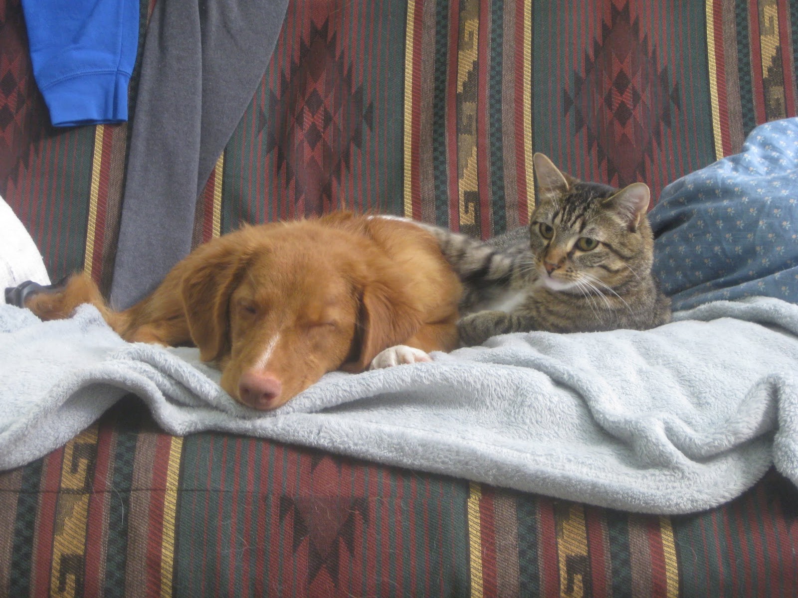 Great photos! What an amazing relationship those to have. My cats and dogs get along, but they certainly don't cuddle, much less snuggle, together. Glad to hear Luke's doing great.